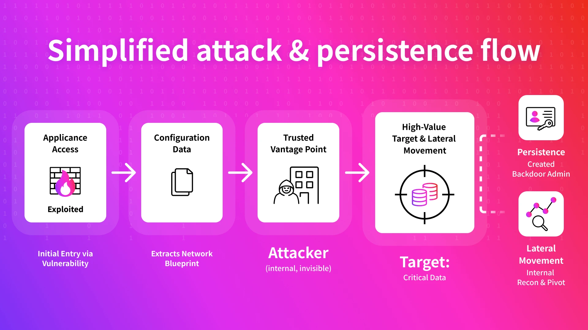 This variability creates gaps that are difficult to track. A vulnerability in one appliance, a delayed patch in another, or an overlooked administrative account in a third can all introduce risk. Because these systems sit at the center of network control, the impact of a single compromised appliance can extend beyond one user or one application.