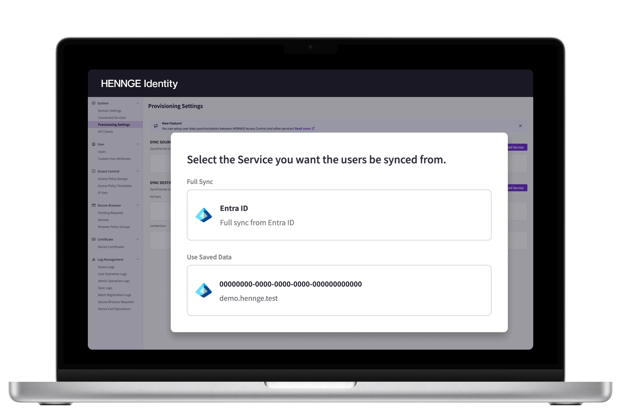Automated user account management, across all directories. No more manual account setup. Seamlessly sync and manage user accounts from Entra ID and Active Directory into HENNGE Access Control, automating creation, updates, and deactivation across your systems.